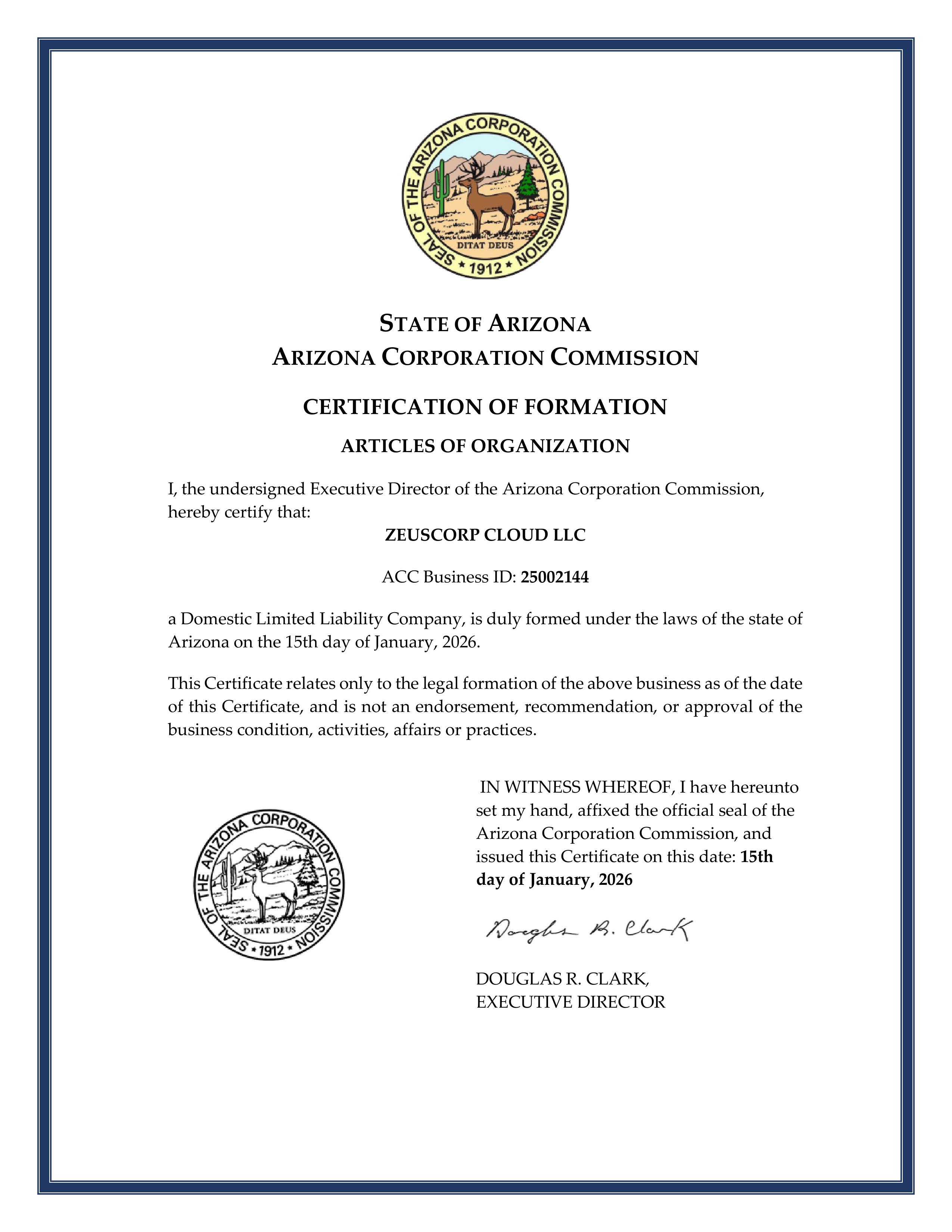 The USA Limited Liability Company (LLC) Certificate officially recognizes our organization as a legally registered entity in the United States. This certification confirms our compliance with U.S. corporate regulations and establishes our credibility as a formally incorporated company.